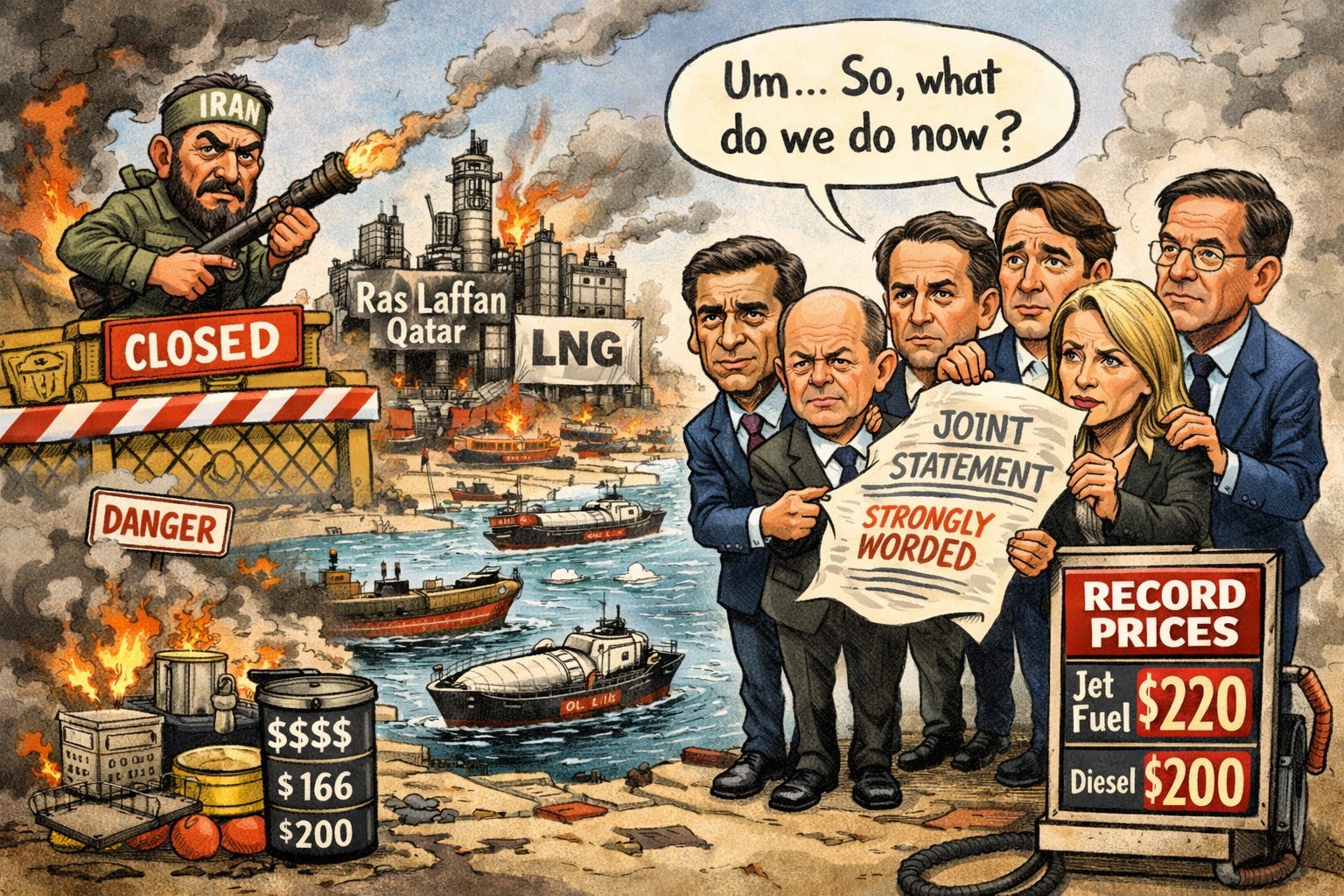 Sensei’s Insight: The physical damage to Ras Laffan transforms this from a shipping disruption into a structural LNG shortage. Even if Hormuz reopens tomorrow, 12.8 million metric tons per year of LNG capacity stays offline for years. Watch European and Asian natural gas benchmarks, currently near $21 and $20 per million British thermal units respectively, for signs of demand destruction and forced fuel switching in power generation.