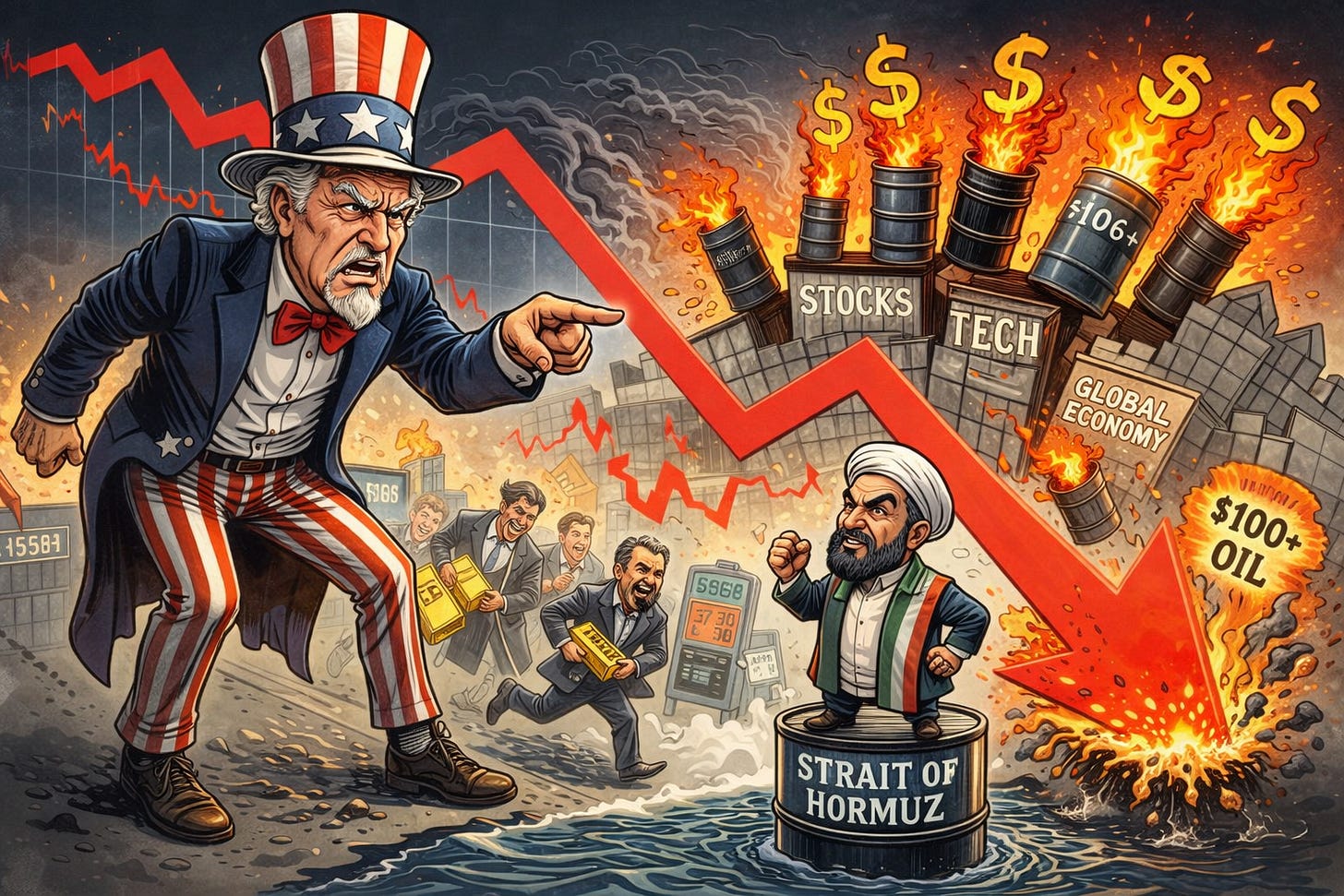 US equity markets are on track to close out their fifth consecutive losing week, and the selloff is becoming harder to classify by normal rules. The Nasdaq Composite confirmed correction territory yesterday, closing down more than 10% from its October record, while the S&P 500 fell 1.74% to 6,477 and is now trading below its 200-day moving average, a key long-term technical indicator, for the first time since spring 2025. This morning, despite Trump’s overnight extension on strikes against Iranian energy infrastructure, S&P futures are down another 0.2%, suggesting markets have stopped responding to diplomatic announcements without verified follow-through. The CBOE Volatility Index (VIX), a widely watched measure of expected near-term market turbulence, is holding at 25-26, its highest sustained level in nearly two years (CNBC).