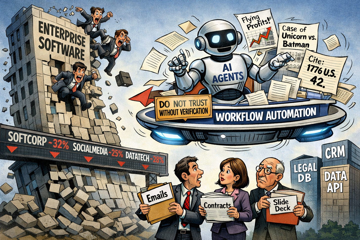🔍 AI agent reality check: Despite market panic, hallucinations and security risks prevent these tools from replacing enterprise software immediately.