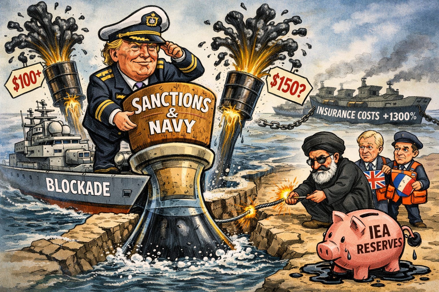 Sensei’s Insight: The blockade puts a floor under oil prices, but what matters more is the IEA reserve buffer running dry. Strategic releases have masked the true scale of the supply shortfall for six weeks. When that cushion is gone, probably within the next two to three weeks, the market will discover what unmitigated 5-million-barrel-per-day deficit pricing actually looks like. That is the next inflection point, not the blockade itself.