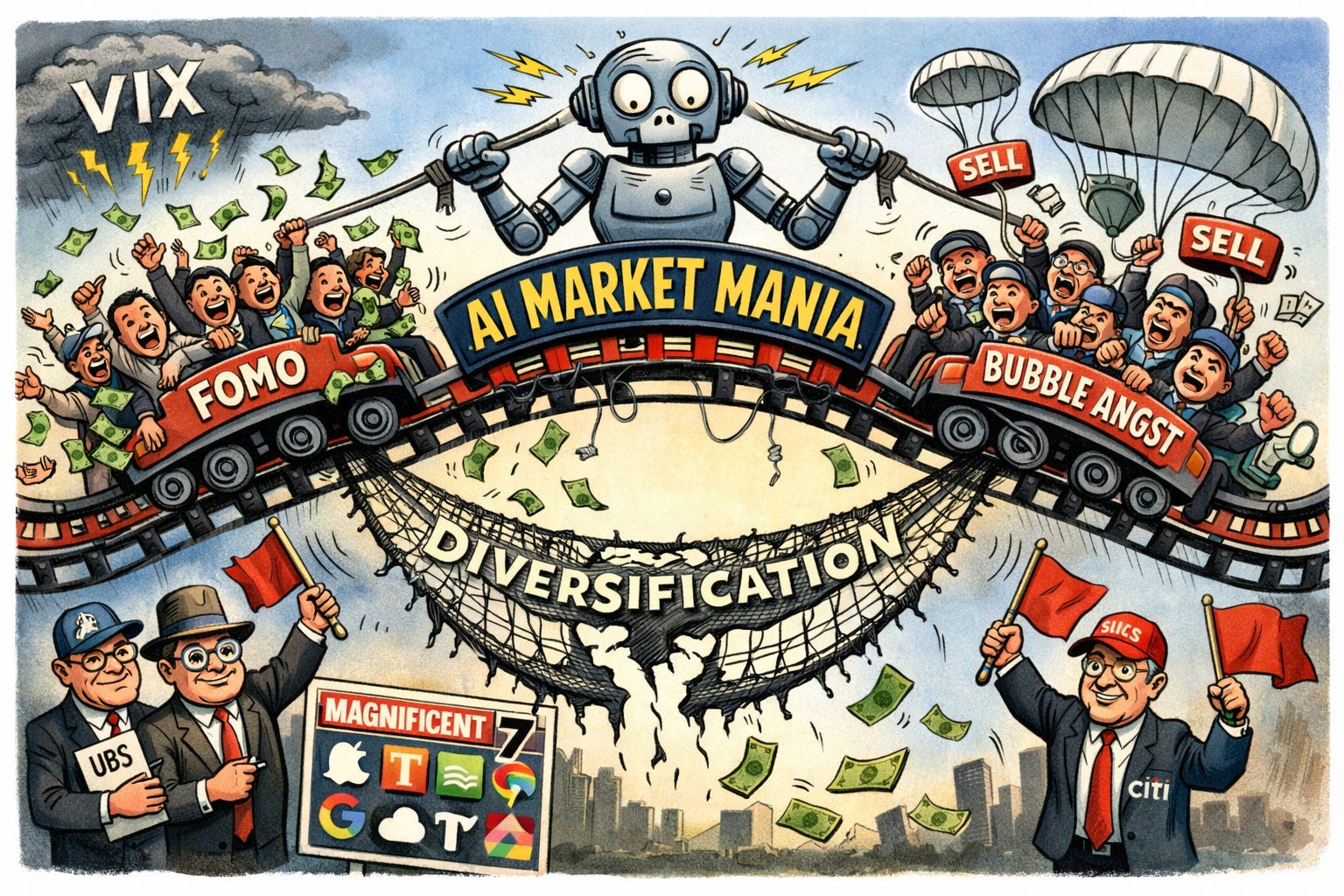 🎢 Wall Street faces AI volatility: Investors balance bubble fears against record-low cash levels and high-conviction tech earnings growth.