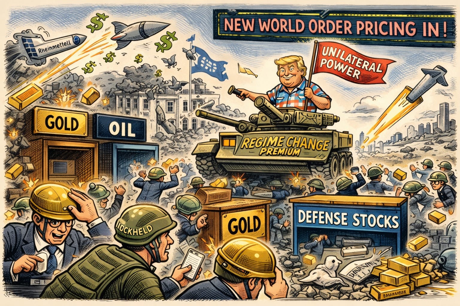 Recent U.S. actions signal a new era of regime-change risk being priced into markets: it was a massive catalyst for the defense sector. While the oil market stayed flat, defensive players like Germany’s Rheinmetall jumped as investors realized the “Operation Absolute Resolve” template relies on high-end military hardware. This move signals a new era where unilateral force replaces slow-moving diplomacy. Investors took the hint, piling into precious metals as a hedge against the potential fallout. Gold climbed 2.7% and silver soared 6.6%, which are massive moves that reflect a sudden, urgent demand for safety in a world where the old rules of sovereignty no longer apply (Bloomberg).