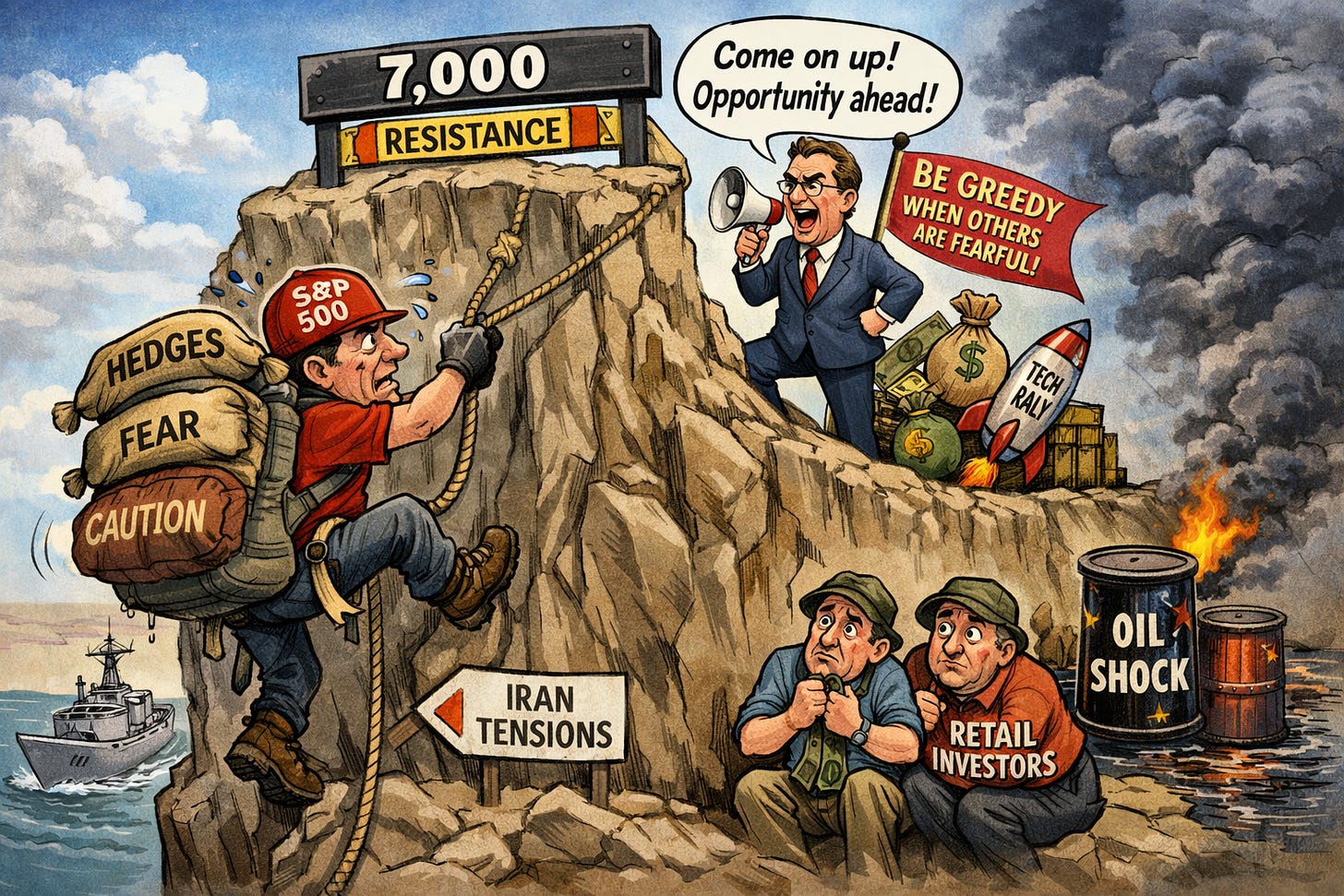 📉 S&P 500 Stalls Near 7,000: High investor fear and heavy hedging might fuel a move higher.