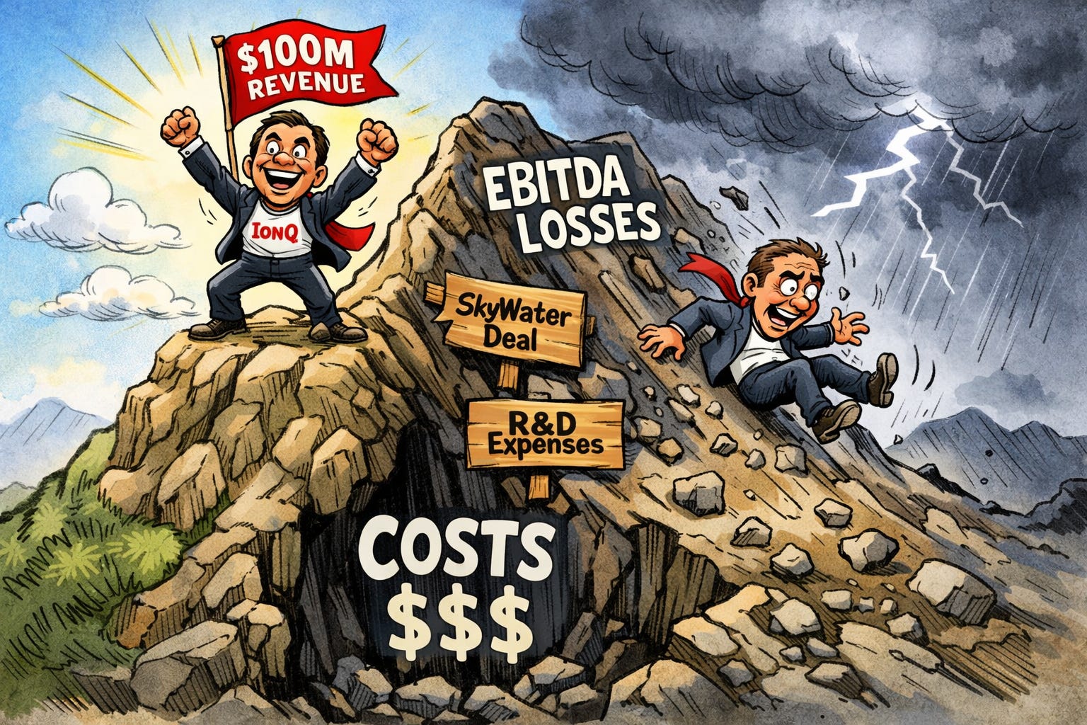 Sensei’s Insight: Crossing $100 million is a genuine milestone, but the maths on the other side of the ledger deserves equal attention. IonQ is guiding for EBITDA losses of up to $330 million in 2026, which means the $3.3 billion cash pile could be tested within a few years if losses keep widening alongside revenue. The SkyWater acquisition will add further cash demands. This is a company worth watching closely, but the path from “impressive growth” to “sustainable business” is not yet visible.