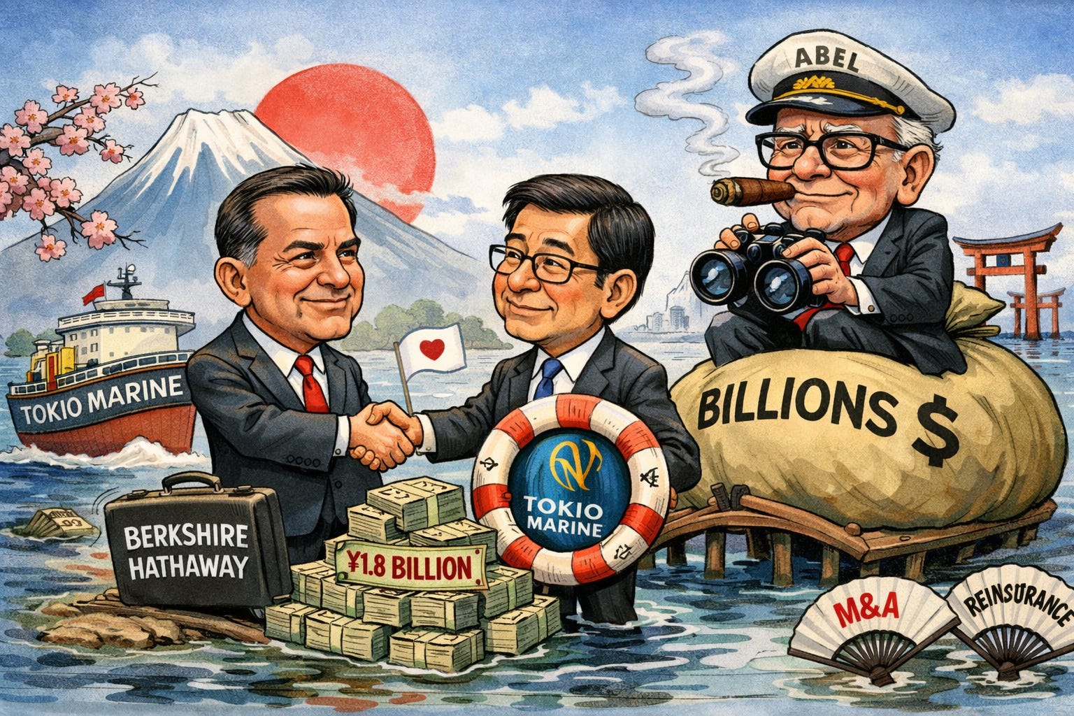 🇯🇵 Berkshire Buys Tokio Marine: Greg Abel initiates a $1.8 billion strategic partnership with Japan’s largest property-casualty insurer.