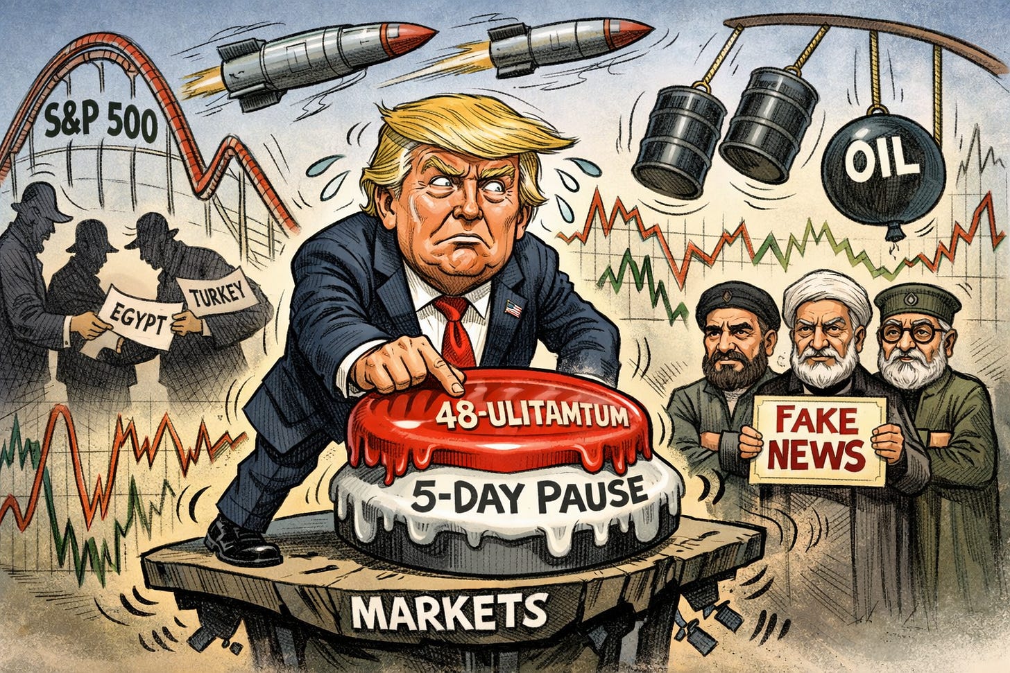 Sensei’s Insight: This is a pattern. Trump set a tariff deadline with China in 2025 and blinked. He set an ultimatum on TikTok and extended it. Now he set a 48-hour deadline on Iran and replaced it with a five-day pause. Markets rallied each time on the retreat, and each time the underlying problem remained. Meanwhile, the Pentagon has submitted ground invasion plans, the 82nd Airborne is being prepared, and another 2,500 Marines shipped out last week. You do not deploy ground forces if you are five days from a deal.