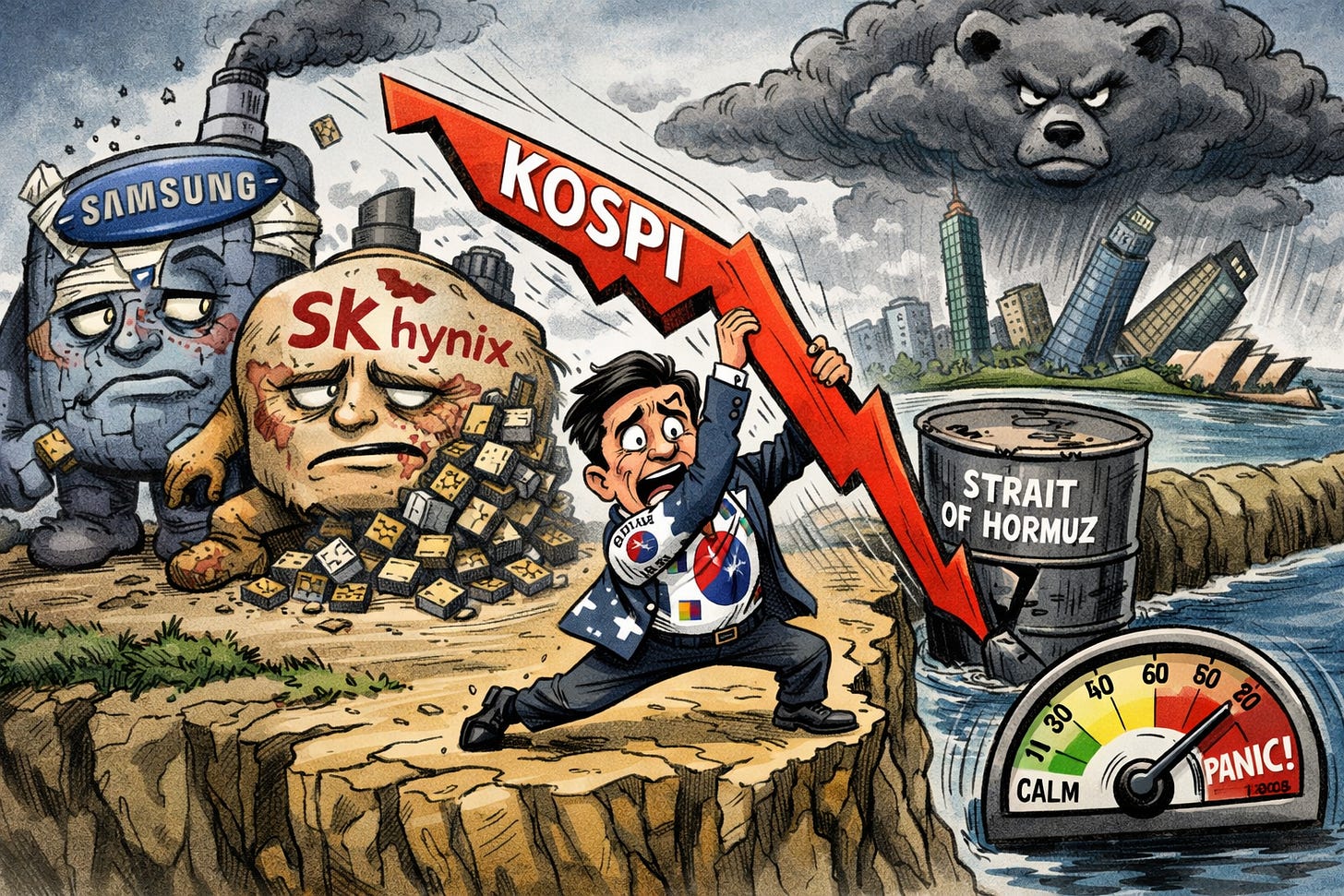 📉 South Korean Markets Crash Hard: The Kospi index plunged over 7%, marking its largest point drop ever amid regional energy fears.