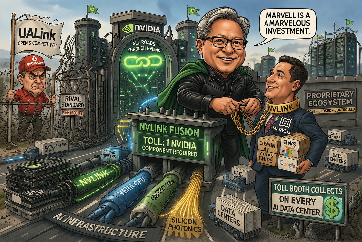Sensei’s Insight: The investment is not about Marvell’s stock price. It is about who controls the plumbing. If NVLink Fusion becomes the default standard for connecting AI chips, Nvidia collects a toll on every data centre built, even the ones using competitors’ processors. That is a platform monopoly being assembled in plain sight.