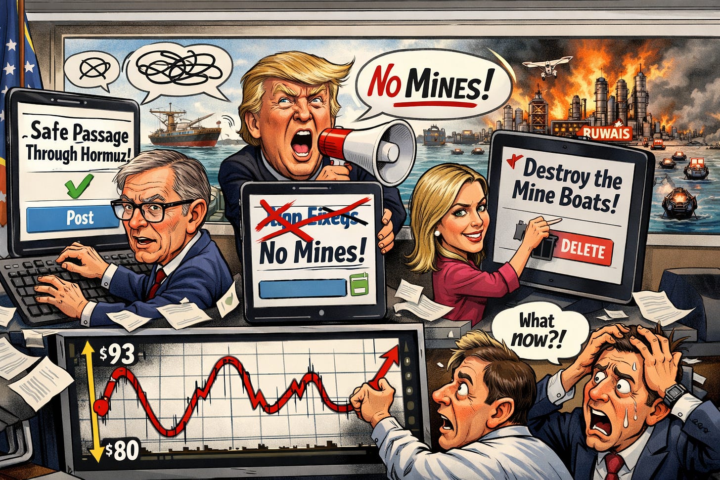 Sensei’s Insight: When official communication shifts from unreliable to self-contradictory within the same hour, markets lose the ability to price risk at all. The Wright correction and Trump’s mine posts signal a White House with no coordinated information strategy. That is not a short-term noise problem - it is a regime where any headline can move oil $5 in either direction, and no one can tell signal from error until after the fact.