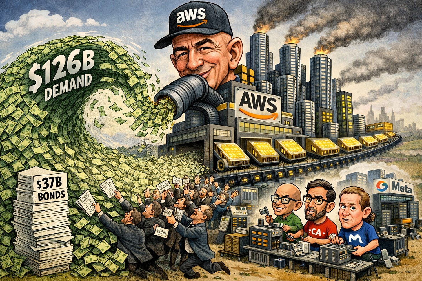 The proceeds are earmarked for Amazon’s planned capital expenditure budget of approximately $200 billion in 2026, focused primarily on data centres, AI chips, and cloud infrastructure. The deal’s timing is telling: it priced on the same day the Iran war was generating significant volatility across global markets, when most corporate borrowers were sidelined. Amazon attracted $126 billion of demand anyway, placing it just behind Oracle’s $129 billion demand record from last month and ahead of Meta’s $125 billion from October 2025. That trio of deals, all within six months, tells a consistent story: the largest pools of institutional capital in the world are actively queueing to lend money to hyperscalers - the handful of giant cloud and AI companies - at a moment when collective capital expenditure across Amazon, Alphabet, Meta, Oracle, and Microsoft is expected to reach approximately $650 billion in 2026 alone (Reuters).