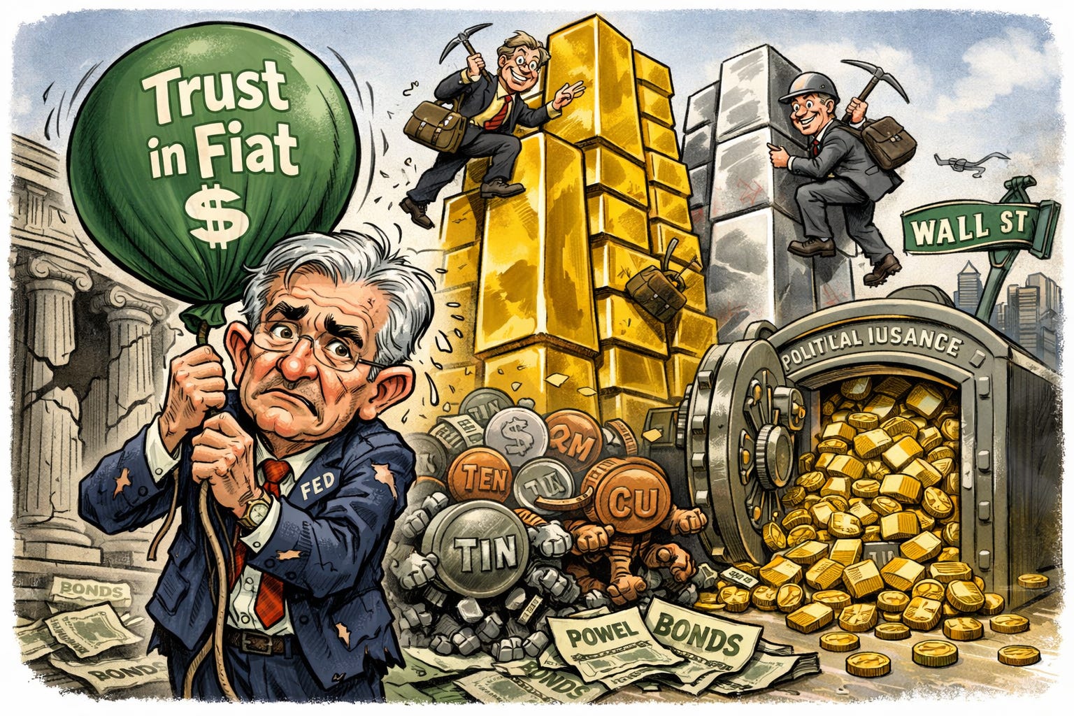 Investors are aggressively rotating out of fiat currencies and into physical commodities as trust in traditional financial systems erodes. This shift is driven by a rare synchronized surge in gold, silver, and industrial metals, with silver alone climbing 150% over the past year. Market anxiety is being fueled by a criminal investigation into the Federal Reserve Chair, which has cast doubt on central bank independence and prompted a search for political insurance. Meanwhile, severe supply constraints and trade tariffs are further inflating the cost of tangible assets. For the market, this move represents a structural pivot toward hard assets to hedge against a weakening dollar.