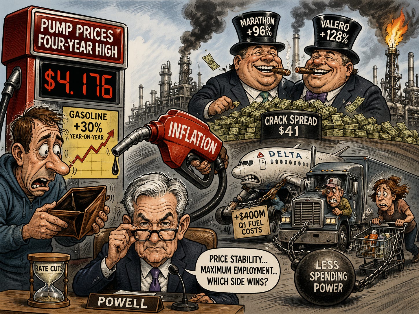 Sensei’s Insight: Energy disinflation was the central case for Fed cuts later this year. With pump prices at four-year highs and refiners booking war-margin earnings, that path narrows. Watch how Powell handles the question this afternoon. He will not commit, but the framing tells you which side of the dual mandate is winning.