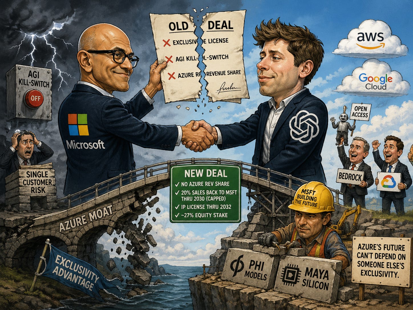 🤝 Microsoft Tears Up OpenAI Pact: Redmond loses model exclusivity but kills the artificial general intelligence clause and concentration risk.