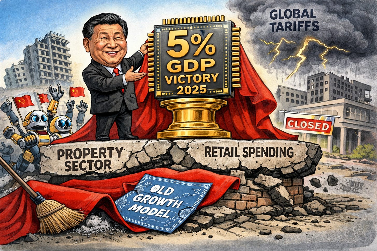 🇨🇳 Xi’s 2025 Victory: China met growth targets via tech exports as property, consumption, and investment engines stalled.