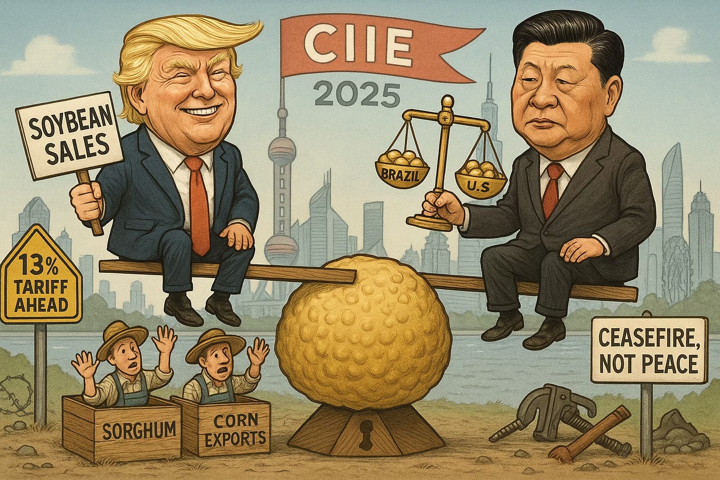 U.S. agricultural exporters arrived at Shanghai’s China International Import Expo (CIIE) this week with cautious optimism following the Trump–Xi framework agreement reached in late October. The U.S. pavilion was 50% larger than last year’s, underscoring renewed hopes that the worst of the trade friction may have passed. China has resumed purchases of soybeans and sorghum, restoring export licenses and initiating fresh shipments after months of boycott (Reuters; SCMP). Still, the détente is partial: U.S. soybeans face a 13% tariff, keeping them less competitive than Brazilian supplies, and the deal suspends rather than eliminates existing tariffs. The CIIE recorded $83.49 billion in intended turnover, a 4.4% increase year-on-year, with over 4,100 firms from 155 countries participating (Business Times).