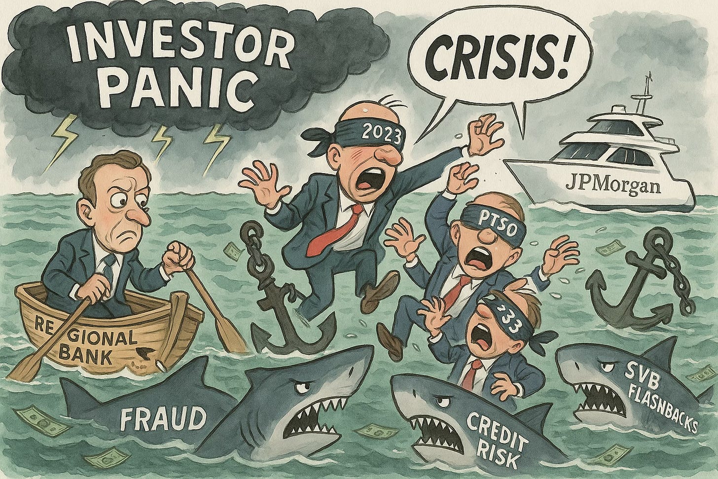 🔍 Regional banks rattled markets as fraud-related loan losses from Zions and Western Alliance reignited credit quality fears.