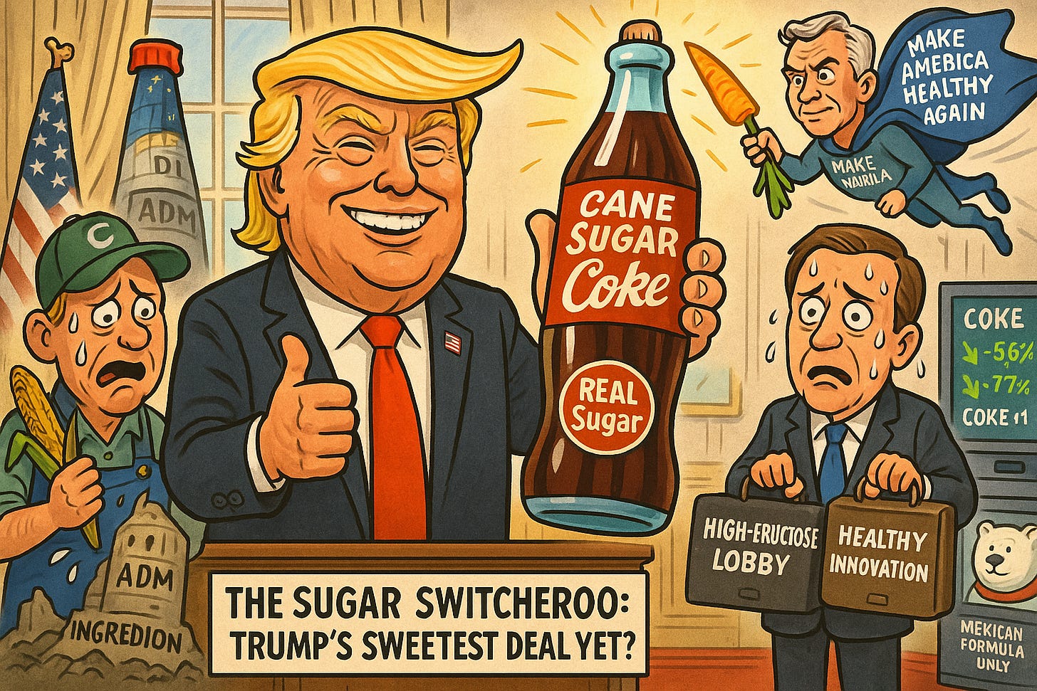 President Donald Trump claimed Wednesday that Coca-Cola has agreed to replace high-fructose corn syrup with "real cane sugar" in its U.S. beverages following direct talks with company executives, announced via Truth Social. He wrote, “I have been speaking to Coca-Cola about using REAL Cane Sugar in Coke in the United States, and they have agreed to do so.” Coca-Cola has yet to confirm the switch, instead issuing a diplomatic statement that it "appreciates President Trump's enthusiasm" and will soon share "more details on new innovative offerings" (CBS News). Coca-Cola already uses cane sugar in international markets, including Mexico (CNN), and the announcement aligns with Health Secretary Robert F. Kennedy Jr.’s “Make America Healthy Again” campaign (Independent).