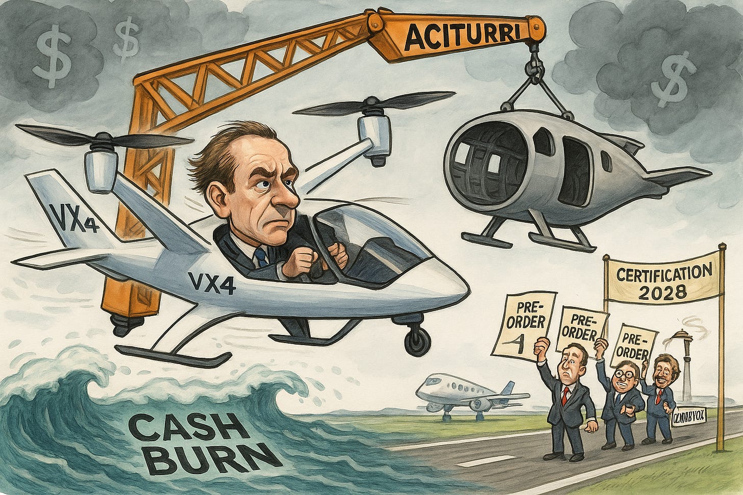 Aciturri brings nearly 50 years of aerospace experience, including major Airbus and Boeing programs, as well as eVTOL work with Eve Air Mobility and Lilium. Vertical maintains its 2025 net operating cash outflow guidance of £90–100 million ($110–125 million) and reported £104 million ($137 million) in cash after July’s $69 million raise. The deal strengthens Vertical’s Flightpath 2030 commercialization plan by securing scalable manufacturing with global regulatory expertise (AINvest). With 1,500 pre-orders from carriers including American Airlines, Japan Airlines, and Bristow, the company’s push from prototype to certified production aircraft depends heavily on such industrial alliances. The VX4 has already achieved multiple piloted wingborne flights—a European first for eVTOL in open airspace—as it targets 2028 entry into service (Rotorhub).