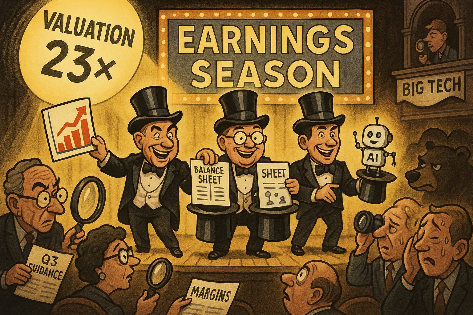 Sensei’s Insight: This is the make-or-break stretch for market credibility. If corporate earnings confirm that growth is broadening beyond big tech, the rally could gain durability — validating elevated multiples. But if results disappoint or guidance turns defensive, expect volatility and possible valuation compression across high-beta sectors. In short, this earnings season isn’t just about growth — it’s about proof of substance