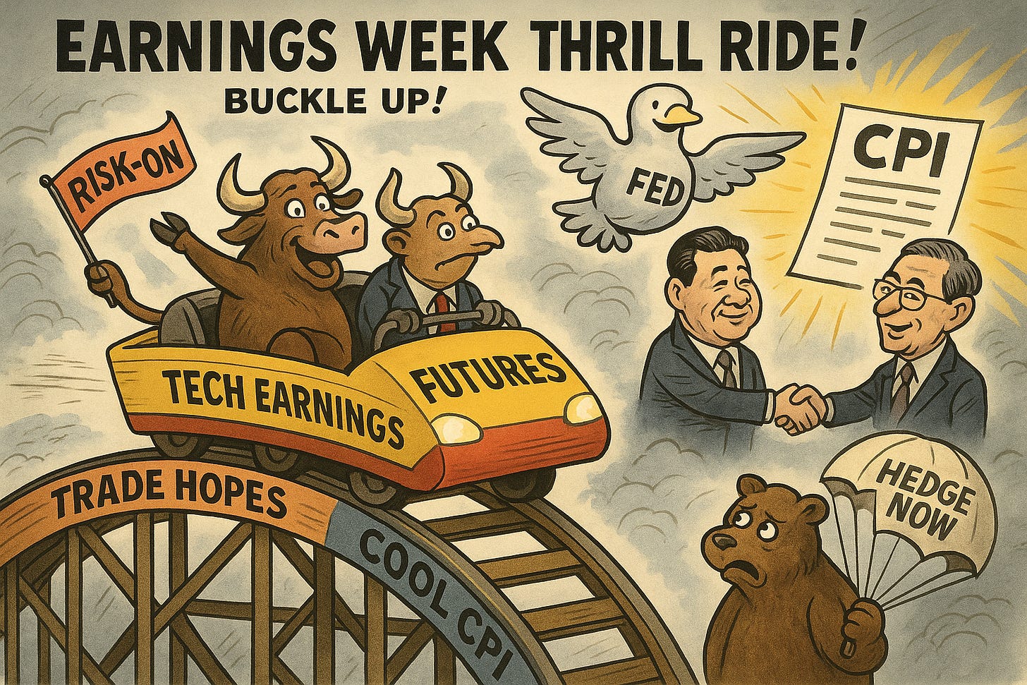 S&P and Nasdaq futures spike on easing inflation, trade optimism, and anticipation of mega-cap tech earnings.⚖️ Markets Face Make-or-Break Week with Key Catalysts