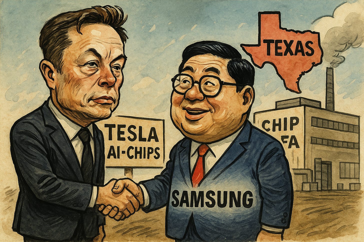Samsung Electronics has secured a landmark $16.5 billion (22.8 trillion won) contract to manufacture Tesla’s next-generation AI6 semiconductor through 2033 (Yahoo Finance). Production will be handled at Samsung’s advanced fab in Taylor, Texas, with volume output set to begin in 2026 (Forbes). Elon Musk called the partnership “hard to overstate” in strategic importance on X, noting that the $16.5 billion figure is “just the bare minimum” with eventual volumes potentially reaching “several times higher” (BusinessKorea). Samsung’s Seoul-listed shares jumped as much as 6.8% on the news (Bloomberg).