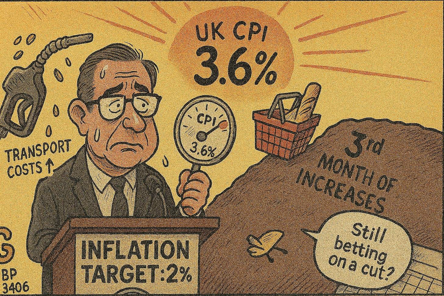 UK inflation just flipped the script: CPI unexpectedly accelerated to 3.6% in June—raising serious doubts about the Bank of England’s next move and jolting rate cut bets off the table.