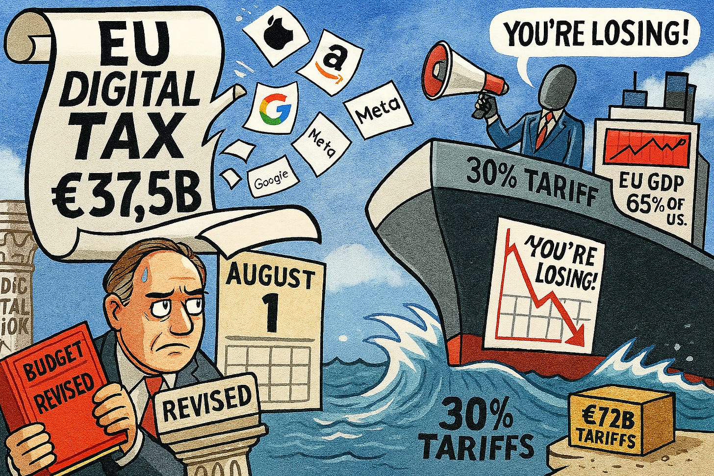 The European Union’s abrupt decision to abandon its digital services tax—originally aimed at tech giants like Apple, Google, Meta, and Amazon—reflects growing anxiety over President Trump’s looming 30% tariffs on EU imports starting August 1. Quietly scrubbed from the EU’s 2028–2035 budget, the levy had been projected to raise €37.5 billion annually and narrow the tax gap between digital and traditional firms (Politico, MacRumors, CEPS). The reversal comes amid fears that escalating trade friction could collapse ongoing negotiations, with EU Trade Commissioner Maroš Šefčovič warning the tariffs would make trade “nearly impossible” (CNN). Analysts now view the retreat not just as a fiscal compromise but a strategic submission to U.S. economic coercion, potentially emboldening future pressure on Brussels’ digital sovereignty agenda.