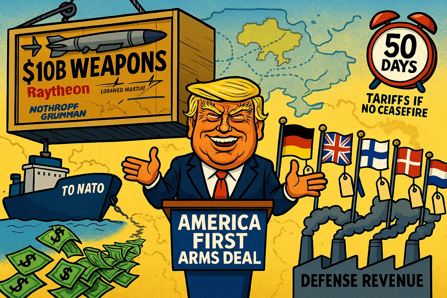 The arrangement channels profits to U.S. defense giants like Raytheon Technologies (RTX), Lockheed Martin (LMT), and Northrop Grumman (NOC) while leaving Europe to foot the bill—allowing Trump to maintain his "America First" stance (AINvest). Simultaneously, Trump issued a 50-day ultimatum to Russia, threatening secondary tariffs on nations trading with Moscow if a ceasefire isn’t reached (Reuters, Politico). Analysts view the deal as a blueprint for future military aid models—locking in U.S. arms revenue while pushing European allies toward long-term commitments, including a NATO-wide 5% GDP defense spending target by 2035 (AINvest, US Funds).