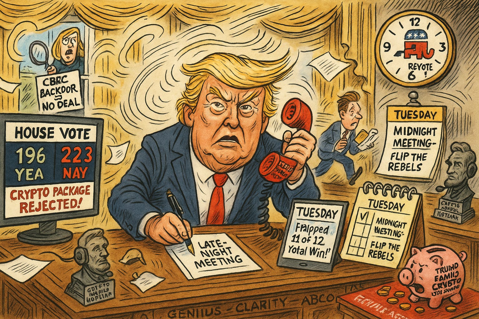 Sensei’s insight: Trump’s attempt to turn “Crypto Week” into a legislative win may now hinge on a tight Wednesday vote—and whether his influence still commands GOP unity in a splintering caucus.