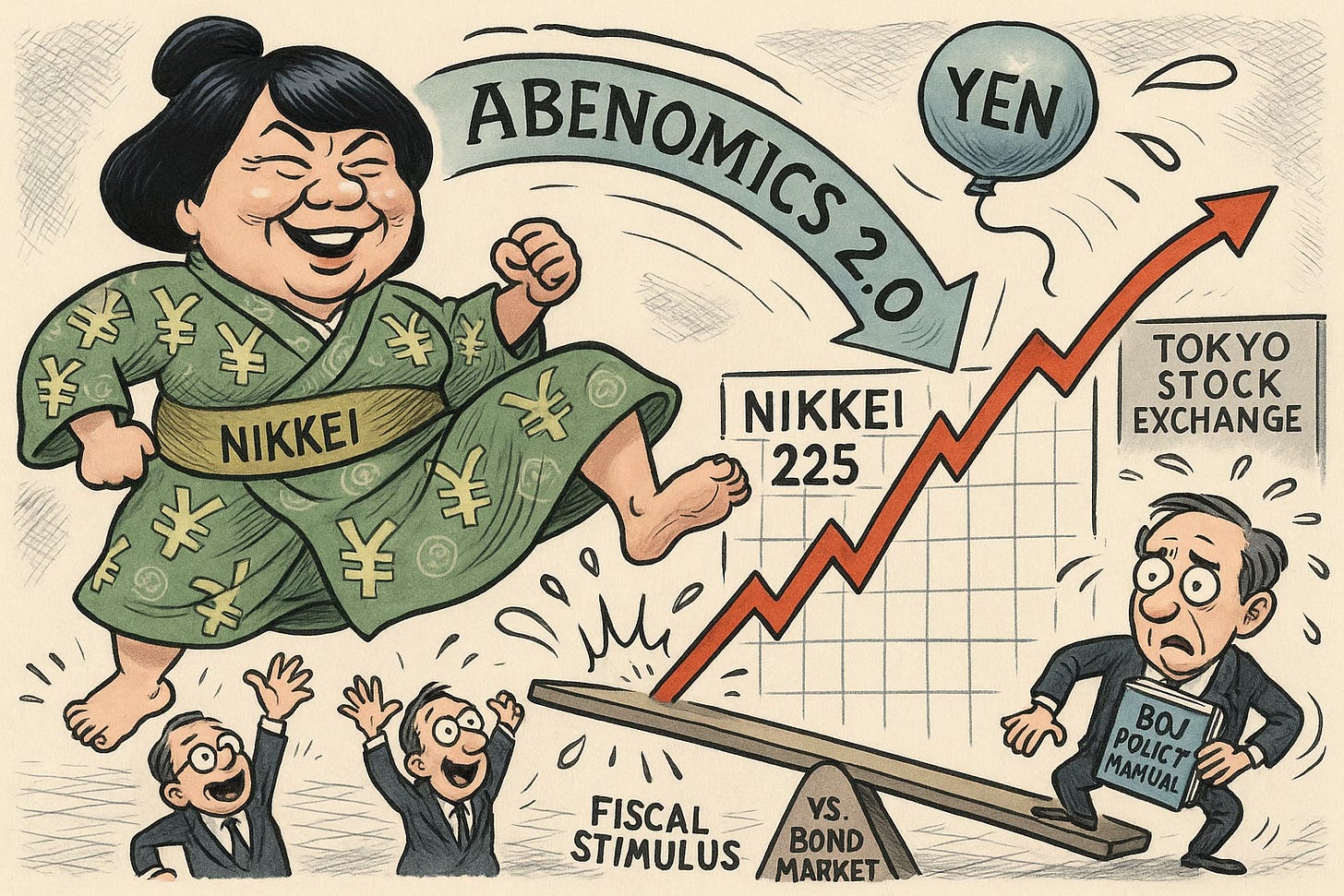 Sensei’s Insight: With record highs testing sentiment, investors should monitor fiscal-deficit trajectories and BOJ commentary—sharp stimulus may invigorate stocks but heighten bond-market volatility.