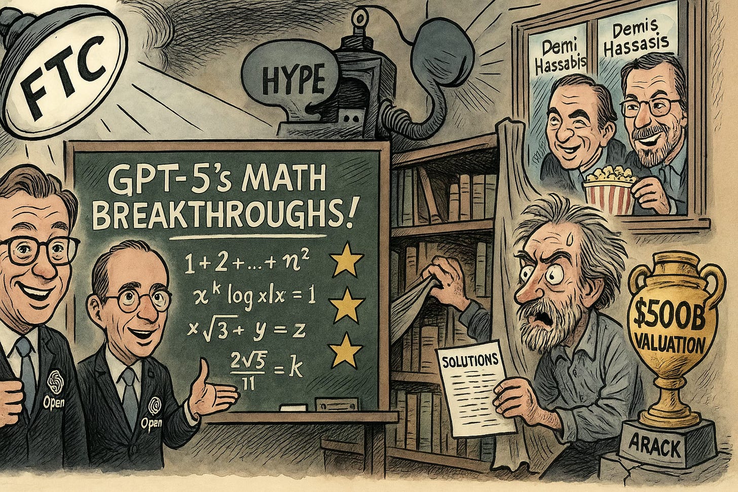 Backlash came swiftly from top AI leaders. Google DeepMind CEO Demis Hassabis called the claim “embarrassing,” while Meta’s Chief AI Scientist Yann LeCun derided the situation as being “hoisted by their own GPTards.” Sebastien Bubeck, the OpenAI researcher at the center of the promotion, admitted that the model had “only found solutions in the literature.” OpenAI deleted the tweets and acknowledged the miscommunication. The timing couldn’t be worse: OpenAI is currently under investigation by the Federal Trade Commission for potential deceptive practices related to consumer harm (Reuters, Fortune). Meanwhile, the company has just reached a staggering $500 billion valuation, making it the world’s most valuable private company.