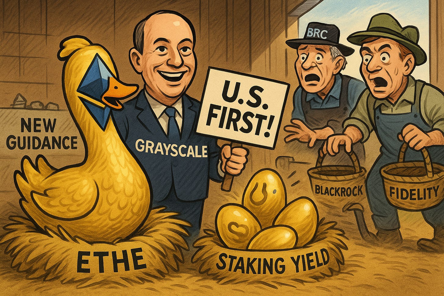 🪙 Grayscale Adds Staking to ETFs — Grayscale launches U.S. crypto ETFs with Ethereum staking rewards, unlocking passive yield for investors.