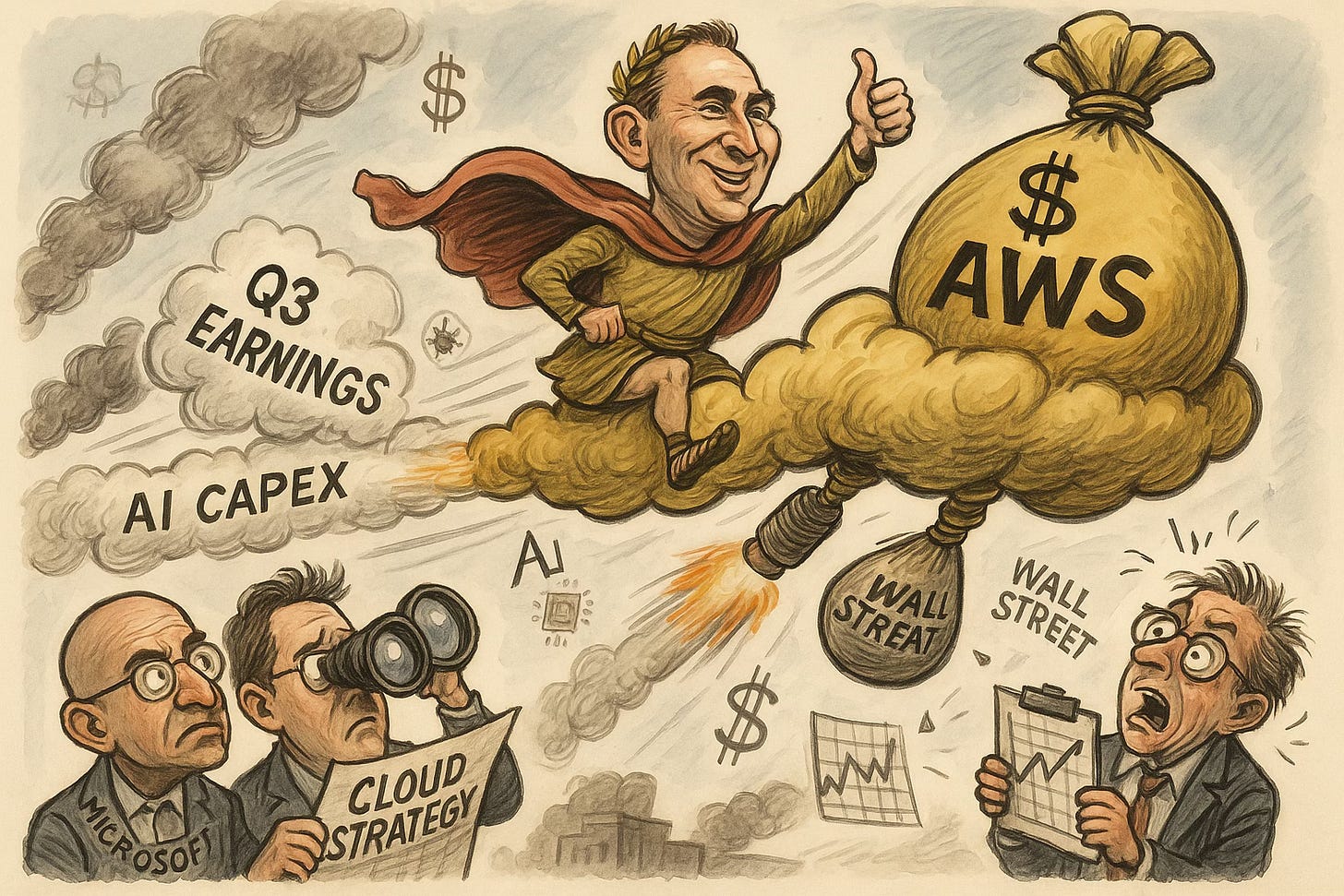 🛒 Amazon smashed Q3 expectations as AWS growth reaccelerated, pushing stock up 11% after strong guidance.