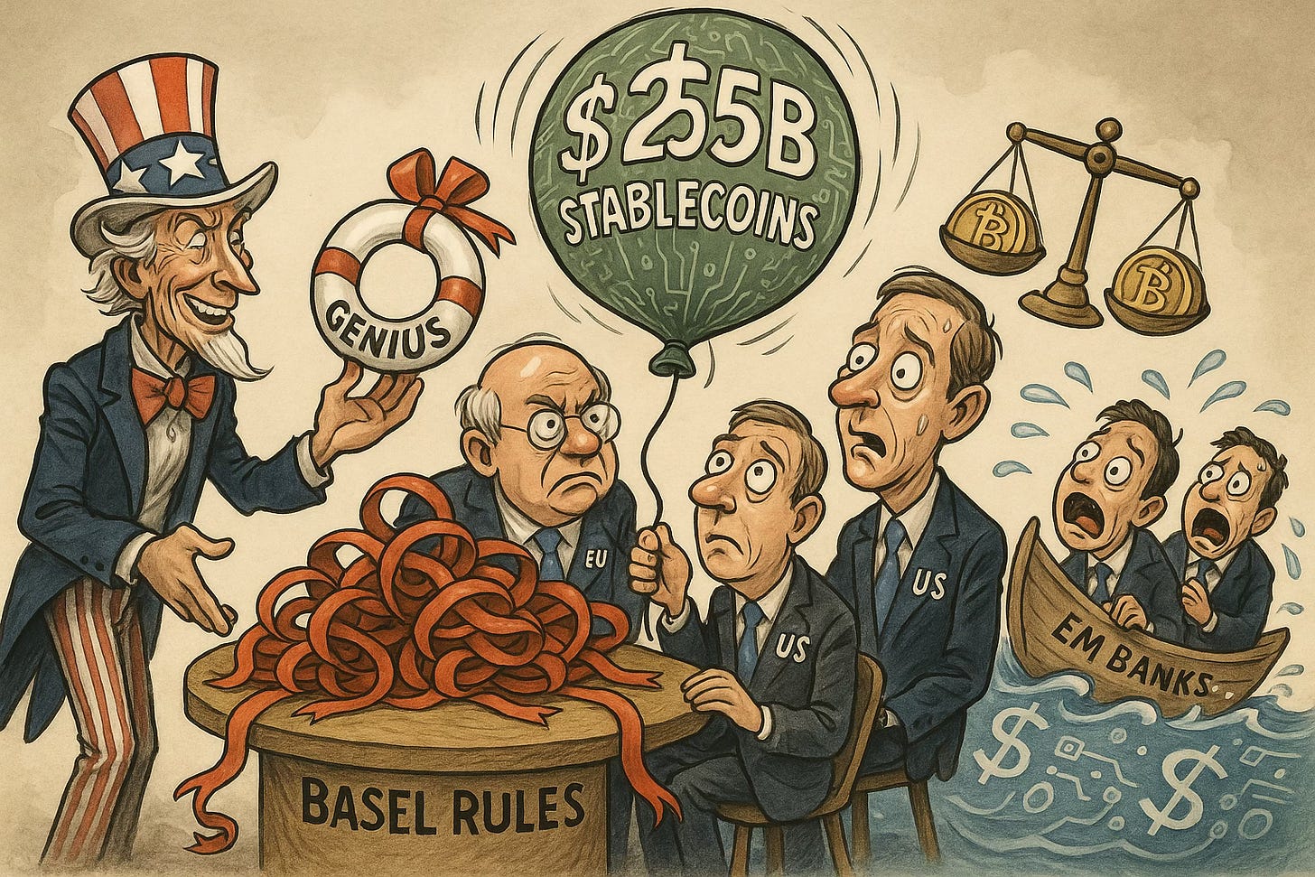 Current Basel standards apply a 1250% risk weight to many crypto assets, but a July 2024 update introduced “Group 1b” treatment for qualifying stablecoins—those issued by regulated entities with robust stabilization mechanisms. However, global inconsistencies remain a concern. The European Systemic Risk Board warned in October 2025 about redemption risks from stablecoins issued by third-country entities lacking harmonized safeguards. Meanwhile, Standard Charteredprojected a $1 trillion drain from emerging market banks as savers pivot to dollar-backed digital currencies amid inflation and currency volatility. The recalibration efforts suggest a broader regulatory acceptance, but also expose new vulnerabilities in a fragmented policy landscape.
