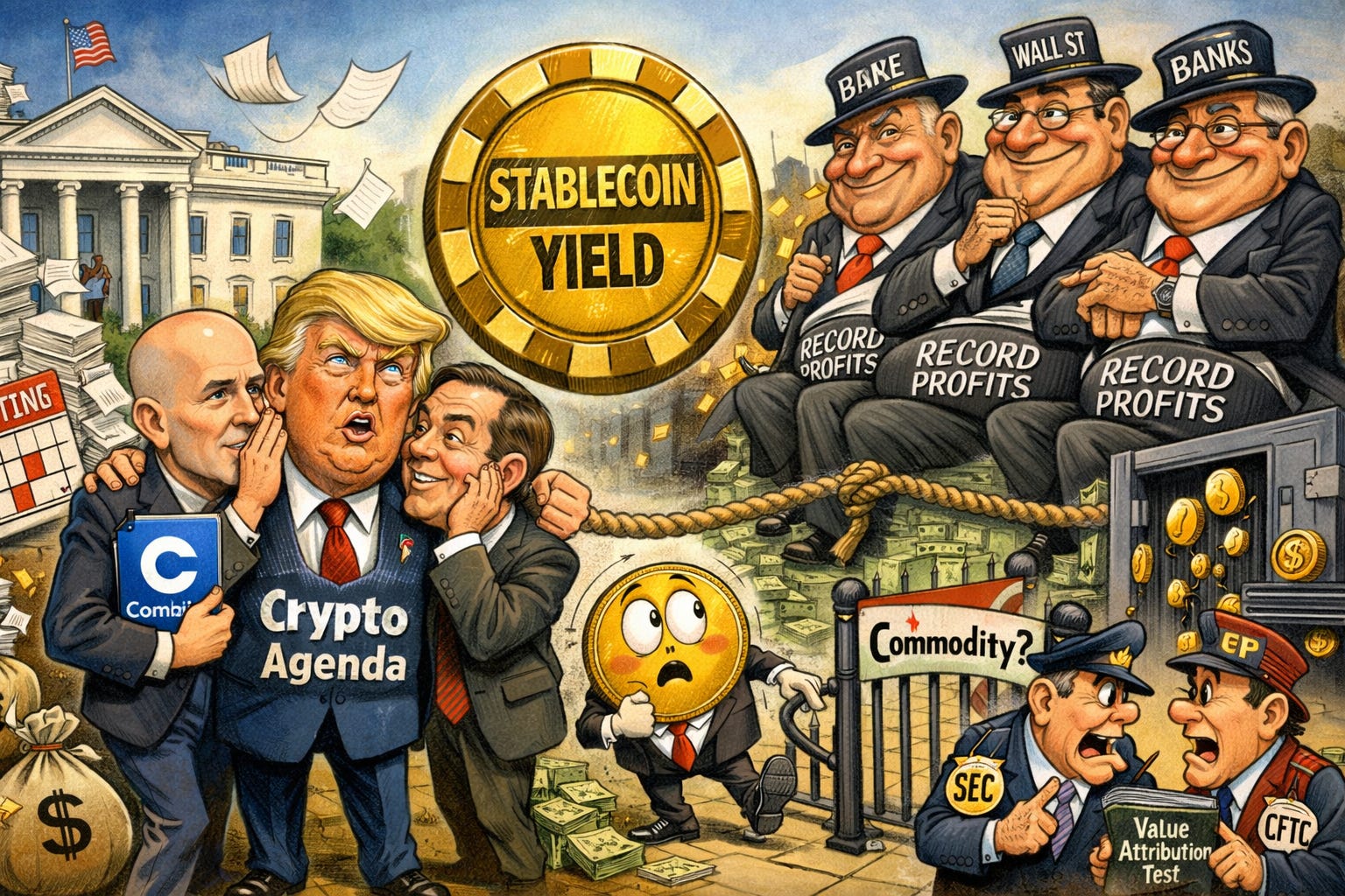 On the evening of March 3, Donald Trump took to Truth Social with an unambiguous threat: banks that block his crypto agenda will answer for it. “The Banks are hitting record profits, and we are not going to allow them to undermine our powerful Crypto Agenda that will end up going to China, and other Countries if we don’t get The Clarity Act taken care of.” Hours earlier, Trump had met privately at the White House with Coinbase CEO Brian Armstrong, whose talking points on stablecoin yield appeared almost verbatim in the presidential posts. Senator Cynthia Lummis echoed within hours: “America can’t afford to wait.” The posts landed just two days after a White House-brokered compromise deadline had passed without a deal (CoinDesk).