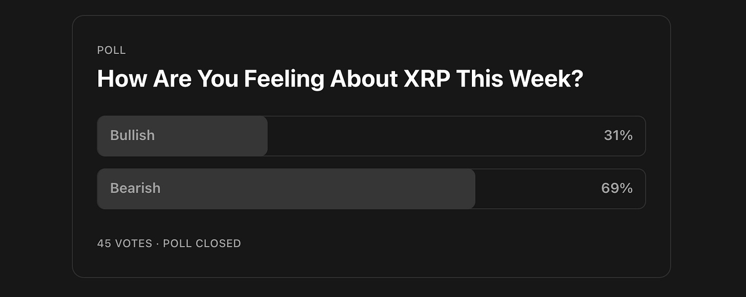 ✅ 69% of you were Bearish and from last week to today XRP is down ~1%.