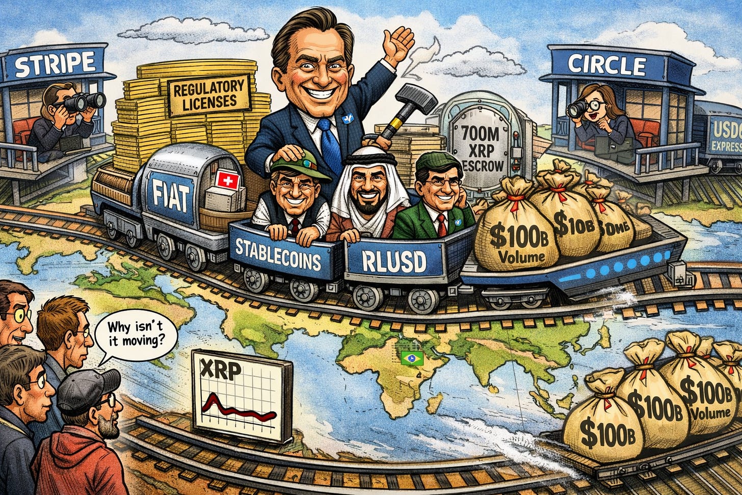 The competitive context keeps Ripple’s position honest. Stripe acquired Bridge for $1.1 billion and announced stablecoin-linked cards with Visa across 100+ countries. Circle reported strong revenue growth with USDC sitting at $75 billion in market cap against RLUSD’s roughly $1.5 billion. The race for institutional stablecoin rails is intensifying, and Ripple is not the dominant force. The $100 billion in total processed volume is a legitimate milestone but is a cumulative lifetime figure, not annual throughput. CoinDesk flagged the tension XRP holders have to sit with: “The payments business operates largely independently of the token’s price.” Ripple the company can grow its enterprise revenues and expand RLUSD circulation without necessarily moving XRP’s price. The link between Ripple’s enterprise success and XRP’s value depends on actual on-chain volume growth, not client announcements.