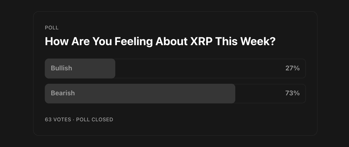 ✅ 73% of you were bearish, and from last Sunday to today XRP is down ~12%.