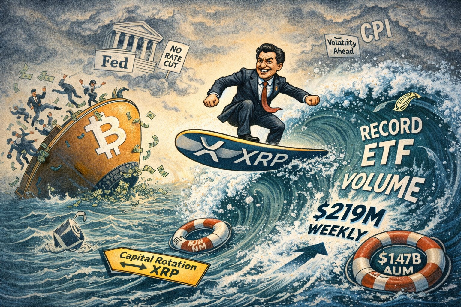 🌊 XRP ETF volume hits record: Institutional capital rotates from Bitcoin into XRP as weekly ETF trading activity reaches $219 million.
