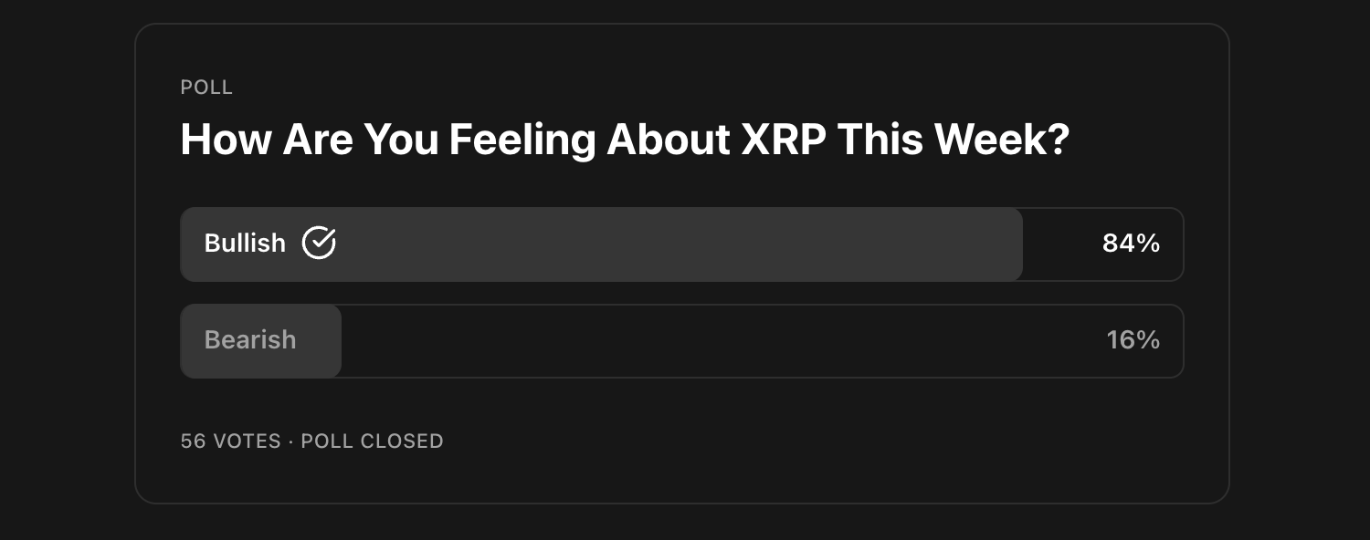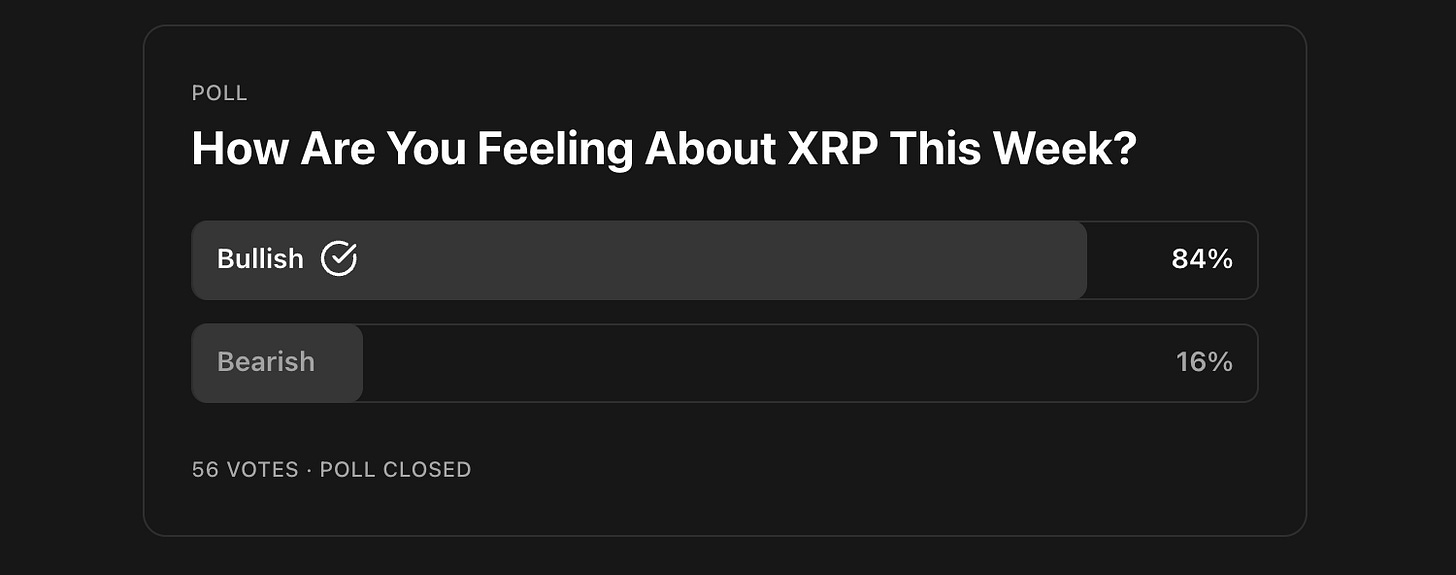 ❌ 84% of you were bullish, however from last Sunday to today XRP is actually down ~1%.