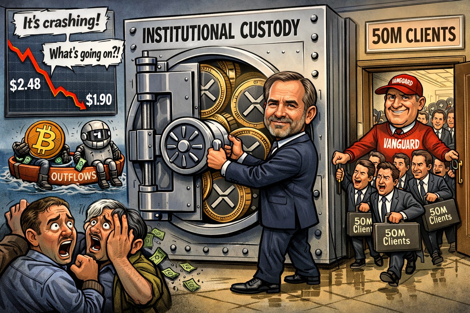 This price lag suggests institutions are likely building positions via OTC desks to avoid moving the order book while retail sentiment wavers. The data from Glassnode shows a significant supply shift: exchange reserves have plummeted from 3.8 billion to roughly 1.6 billion XRP as tokens move into regulated custody. With Vanguard now opening access to 50 million clients, the infrastructure for a massive supply squeeze is basically in place. Ripple CEO Brad Garlinghouse noted that this “pent-up demand” signals a transition where XRP is viewed as a structural payment asset rather than a speculative risk trade like its peers.