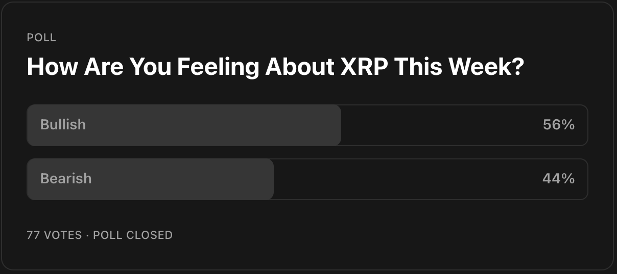 56% of you were bullish, however from last sunday to today XRP is actually down ~4%.