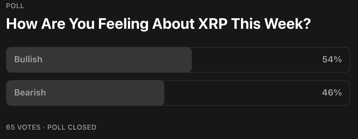 54% of you were bullish, however from last Sunday to today XRP is actually down ~3%.